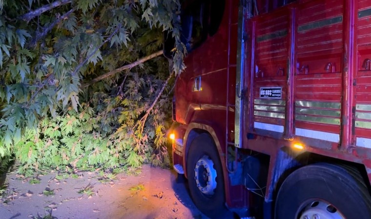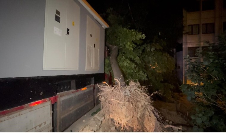 Elazığ’da trafo kulübesi yüklü tır, ağaca takıldı. Ağacın devrildiği kazada, sürücü yaralandı.