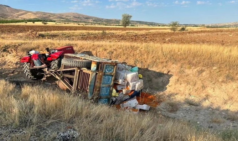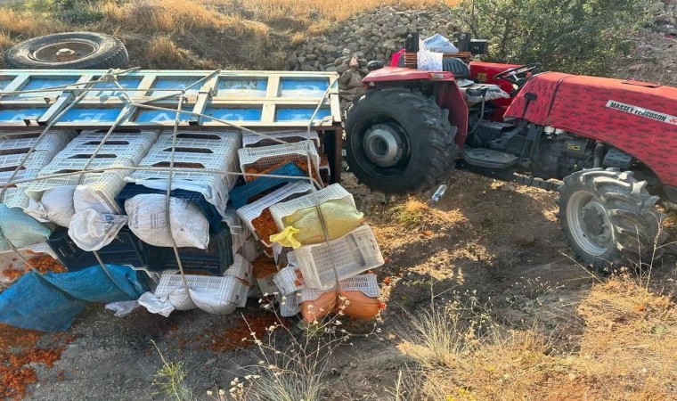 Elazığ’da sürücüsünün direksiyon hakimiyeti kaybettiği traktörün römorku devrildi. Ölen ya da yaralananın olmadığı kazada araçta maddi hasar meydana geldi.