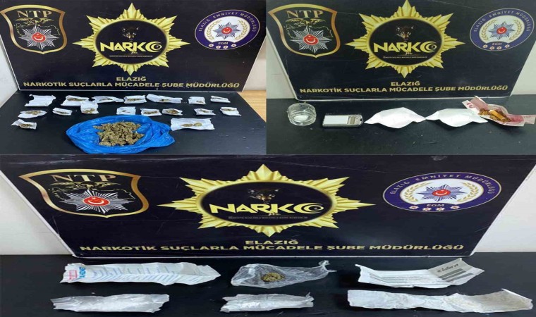 Elazığ Cumhuriyet Başsavcılığı koordinesinde İl Emniyet Müdürlüğü Narkotik Suçlarla Mücadele Şube Müdürlüğü tarafından uyuşturucu ile mücadele çerçevesinde sokak satıcılarına yönelik uygulama gerçekleştirildi. Yapılan uygulamalarda 4 şahsın üst ve ikametlerinde yapılan aramada satışa hazır 20 parça halinde 86,36 gram esrar maddesi, 8 parça halinde 9.75 gram metamfetamin maddesi, 1 adet hassas terazi, uyuşturucu madde kullanım aparatları ele geçirildi. Emniyetteki işlemlerinin ardından adliyeye sevk edilen zanlılardan 2’si tutuklanırken, 2’si adli kontrol şartı ile serbest bırakıldı.