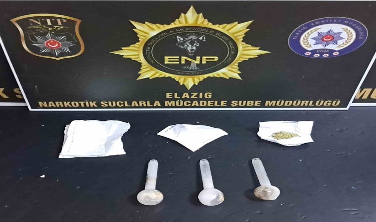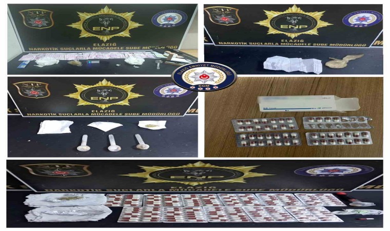 Elazığ Cumhuriyet Başsavcılığı koordinesinde İl Emniyet Müdürlüğü Narkotik Suçlarla Mücadele Şube Müdürlüğü tarafından uyuşturucu ile mücadele çerçevesinde çalışma gerçekleştirildi. Yapılan çalışmalarda 6 şüpheli şahıstan 5 parça halinde 34,65 gram metamfetamin maddesi, 5 parça halinde 33.36 gram esrar maddesi, 201 adet sentetik ecza, 6 adet ectasy hap, 1 adet hassas terazi, 5 adet uyuşturucu madde kullanım aparatı, 2 adet kesici alet, uyuşturucu madde ticaretinden elde edildiği düşünülen 5 bin 840 Türk Lirası ele geçirildi.