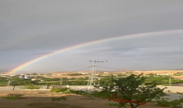 Elazığ’da yağmur sonrası ortaya çıkan gökkuşağı, seyrine doyumsuz bir manzara oluşturdu.