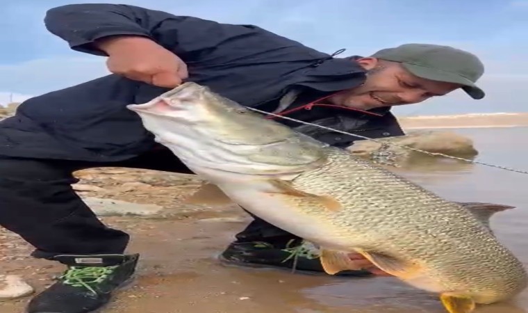 Elazığ’da amatör bir balıkçının Keban Baraj Gölünde yakaladığı yaklaşık 18 kilo ve 1,5 metre uzunluğundaki dev Fırat turnası, görenleri hayretler içinde bıraktı.