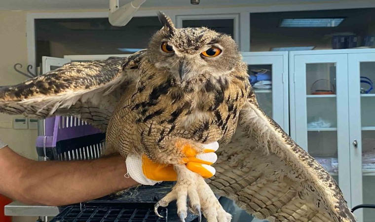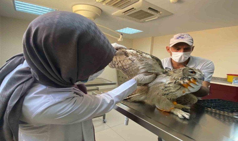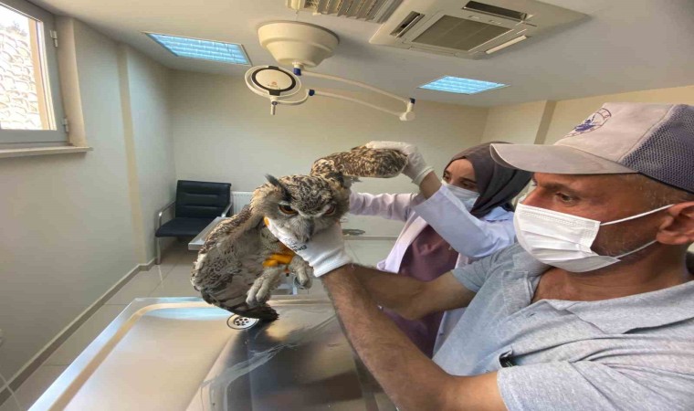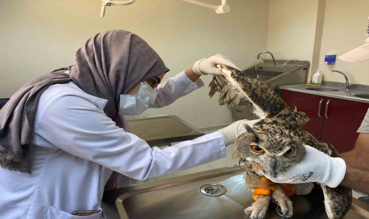 Elazığ’da kanadında zedelenme olduğu tespit edilen ve uçamayan kulaklı orman baykuşu tedavi altına alındı.