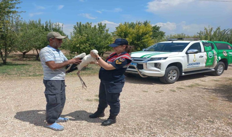 Elazığ’da vatandaşlar tarafından yaralı halde bulunan leylek, jandarma ekipleri tarafından koruma altına alındı.