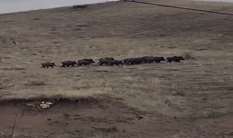 Elazığ’da yiyecek arayan domuz sürüsü cep telefonu kamerasına yansıdı.