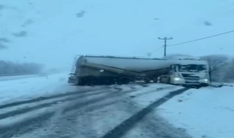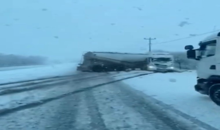 Aynı bölgede başka bir kazada ise bir silobas, kayganlaşan yolda kontrolden çıkarak ters döndü. O anlar, bir başka sürücü tarafından anbean kaydedildi. Kazada araç sürücüsü hafif şekilde yaralanırken, olay yerine sevk edilen ekipler yolda güvenliği sağladı.