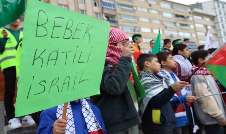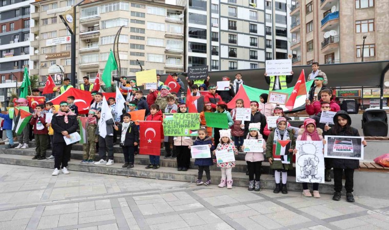 Elazığ’da Anadolu Gençli Derneği öncülüğünde onlarca çocuk, Gazze’de akranlarının katledilmesine tepki gösterdi. Çocuklar, “Temiz yürekler Kudüs için meydanda” sloganıyla Cumhuriyet Meydanında toplandı. Gelen çocukların ellerinde taşıdıkları pankartlardaki, ’’5 yaşındayım Filistin’in yanındayım”, “Büyüyorum Mescid-i Aksa Hiç Korkma” ve ’’Çocuk Katili İsrail Filistin’den Defol’’ yazılarını taşıdı. Filistin lehine sloganlar atan çocuklar, İsrail tarafından öldürülen akranlarının fotoğraflarını ve Gazze ile dayanışmayı ifade eden dövizler taşıdı. Sırasıyla Kur’an-ı Kerim tilaveti duanın okunması, basın acıkması ve şiir okuyan çocuklar, duygulandırdı.