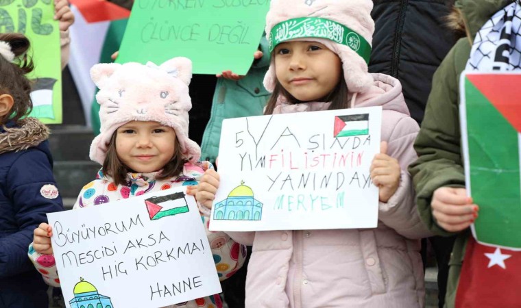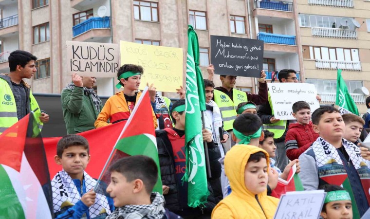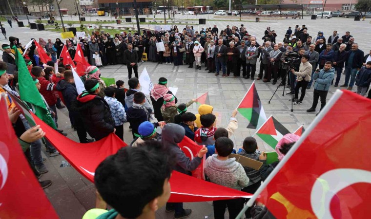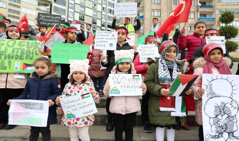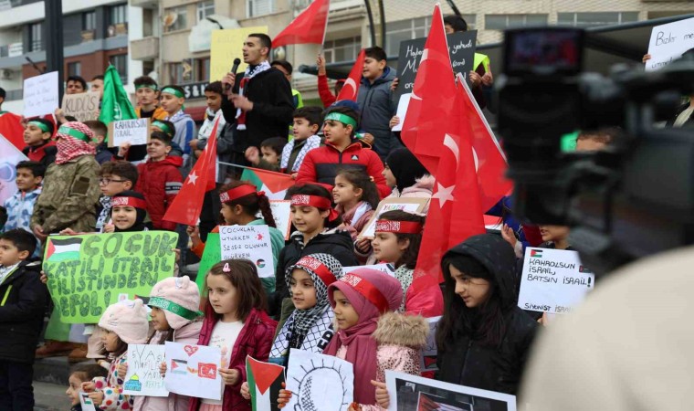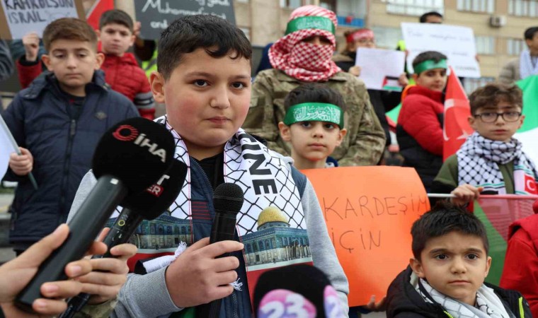 Elazığ’da bir grup çocuk, ’Temiz yürekler Kudüs için meydanda’ sloganıyla İsrail ordusunun abluka altındaki Gazze Şeridi’nde çocukların öldürmesini protesto etti. Tekbirler getirerek İsrail’i lanetleyen çocukların açıklamaları ve şiirleri yüreklere dokundu.