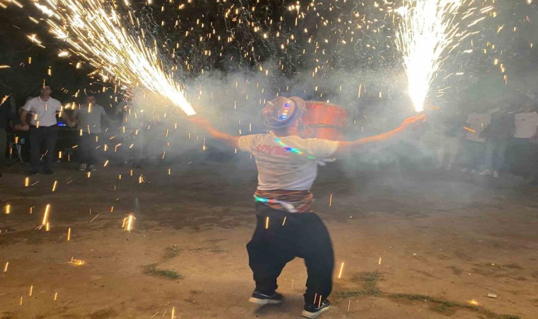 Elazığ’da ve çevre illerdeki düğünlerin vazgeçilmezi ismi haline gelen ’Kosovalı Mami Can’ lakaplı davulcu Muhammed Şahin Uçkaç, gittiği düğünde ağzında tuttuğu meşale ve oluşturduğu ateş çemberinde yaptığı şov ile coşturdu.