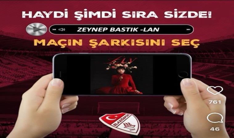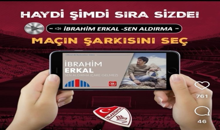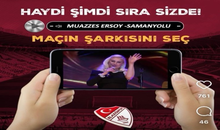 Nesine 2. Lig Kırmızı Grubun 6. haftasında Menemen FK’yı konuk edecek olan Çimentaş Elazığspor maçın şarkısını taraftarlarının oluruna bıraktı. Sosyal medya üzerinden başlatılan anketle bordo-beyazlı ekip taraftarlarına maçın şarkısı hangisi olsun diye sordu. Seçenekler arasında Murat Göğebakan’ın Vurgunum, Muazzes Ersoy’un Samanyolu, İbrahim Erkal’ın Sen Aldırma ve Zeynep Bastık’ın Lan isimli eserleri bulunuyor.