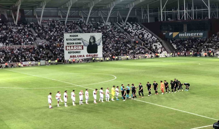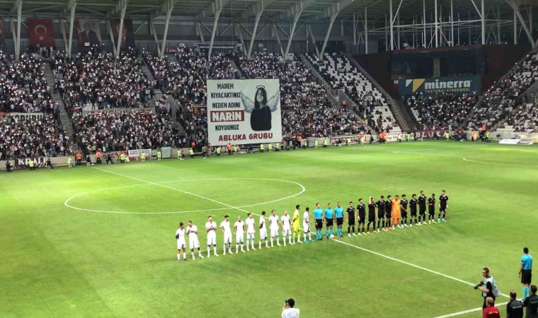Diyarbakır’da vahşice katledilen 8 yaşındaki Narin Güran, Elazığspor-Nazillispor maçı öncesi açılan pankartla anıldı.