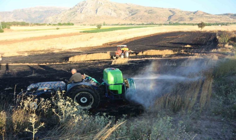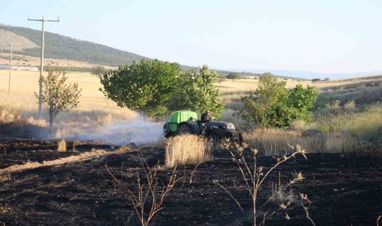 Burdur’un Tefenni ilçesinde elektrik direğinden sıçrayan kıvılcımlar nedeniyle çıkan yangında 8 dönüm arazi küle döndü.