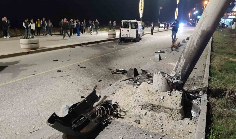 Kazada, sürücü M.C.K. ile hafif ticari araçta yolcu olarak bulunan 3 kişi yaralandı. Kazada, elektrik direği eğilirken caddenin bir kesiminde elektrikler kesildi.