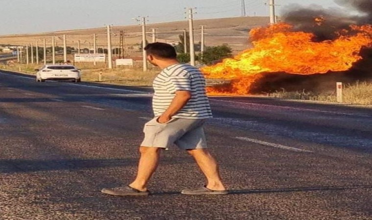 Olay, Aksaray - Nevşehir Karayolu Çağlayan köyü mevkiinde yaşandı. Edinilen bilgiye göre, Aksaray’dan Nevşehir istikametine seyreden Züriye Kocabaş (46) idaresindeki 07 AUL 159 plakalı Audi marka otomobil Çağlayan köyü mevki 28. kilometrede motor kısmında bulunan kabloların şase yapması nedeniyle duman çıkardı. Dumanı fark eden sürücü hızını azaltırken bu kez ön kaputtan alevler püskürmeye başladı. Aracı hemen sağa çekerek kendini otomobilden aşağıya atan sürücü son anda yanmaktan kurtulurken araç alev alev yanmaya başladı. Kısa sürede alev topuna dönen otomobile yoldan geçen diğer sürücüler müdahale etmek istedi. Ancak alevlerin tüm aracı sarması üzerine kimse bir şey yapamadı. Alevlere teslim olan aracın o anki görüntüleri bir vatandaşın cep telefonu kamerasına yansıdı. Haber verilmesi üzerine olay yerine gelen Aksaray Belediyesi İtfaiye Müdürlüğü ekipleri yangına müdahale ederek kısa sürede kontrol altına aldı. Jandarma ekiplerinin yolda güvenlik önlemi aldığı yangının elektrik kablolarının şase yapması sonucu çıktığı belirlendi.