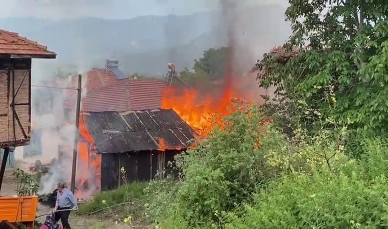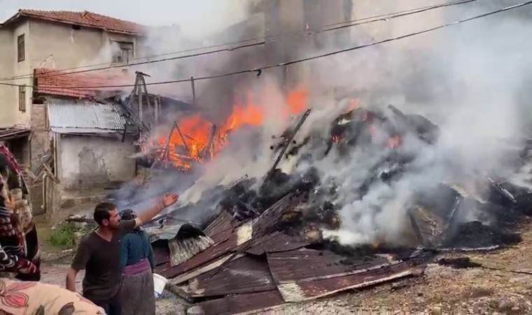 Çorum’un Dodurga ilçesine bağlı Dikenli köyünde öğle saatlerinde çıkan yangında bir samanlık ile iki ev yandı.