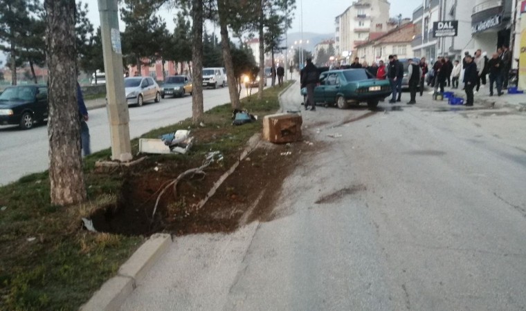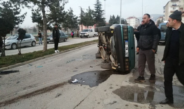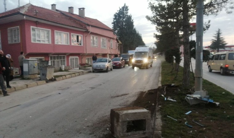 Isparta’nın Yalvaç ilçesinde meydana gelen kazada bir otomobil elektrik panosuna çarparak yan yattı.