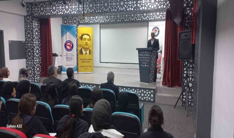 Eleşkirt Recep Tayyip Erdoğan İmam Hatip Lisesi konferans salonunda Ağrı İbrahim Çeçen Üniversitesi Öğretim Üyesi Prof. Dr. Mustafa Aydemir’in katılımı ile "Kitabın İkramı Bizden, İkra’sı (Okuması) Sizden Olsun" konulu program düzenledi.