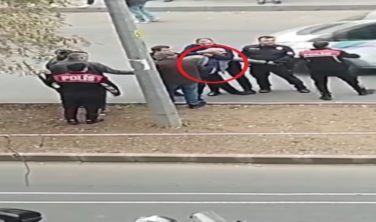 Polis, şahsı gözaltına alırken, olay anı bir vatandaşın telefon kamerasına yansıdı.