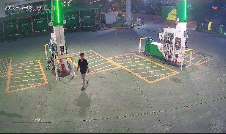 Adana’da bir akaryakıt istasyonunda şüpheli elini kolunu sallayarak şarjdaki telefonu çaldı, sonra mutlu bir şekilde oradan ayrıldığı anlar güvenlik kamerasına yansıdı.