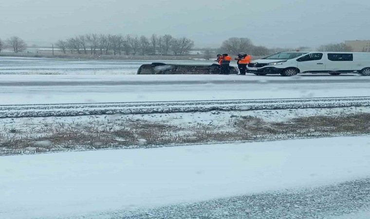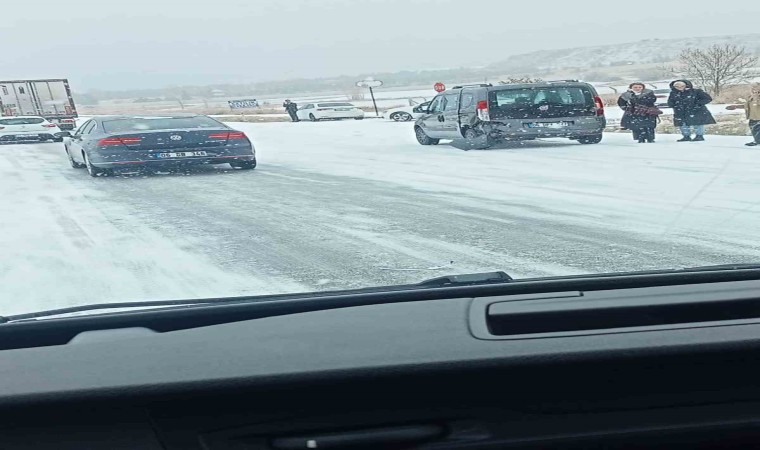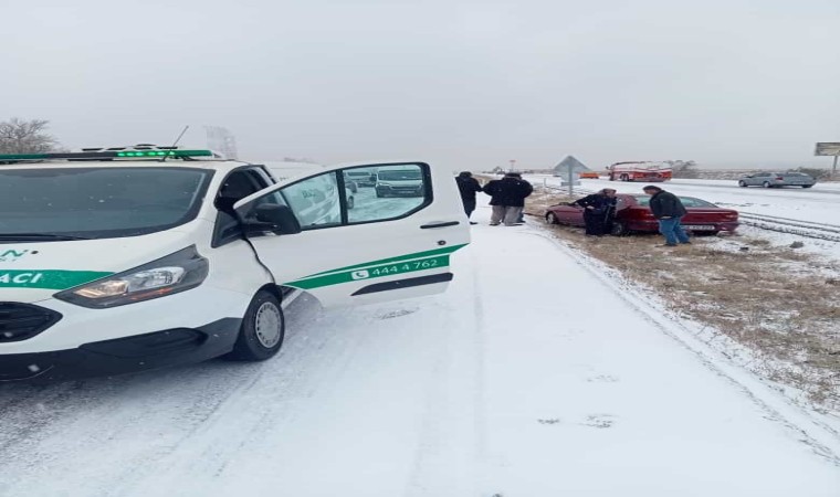 Ankara’nın Elmadağ ilçesinde kar yağışı nedeniyle araçlar zor anlar yaşadı.