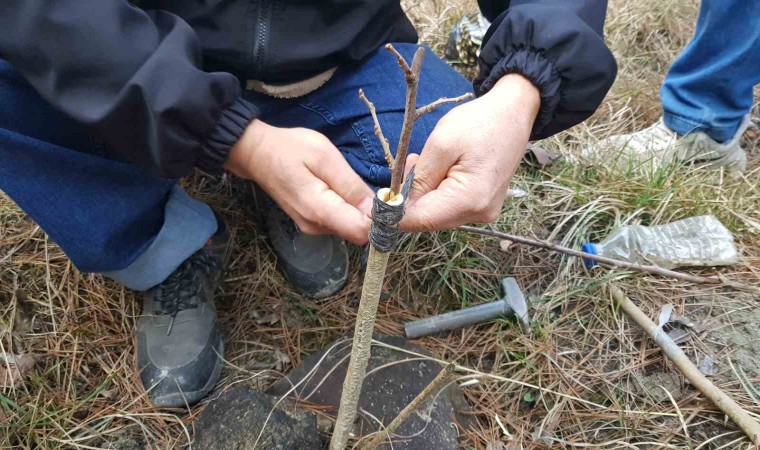 Karabük’te emekli imam 8 yıldır gezdiği doğada yok olmak üzere olan meyve ağaçlarına aşılama yapıyor.