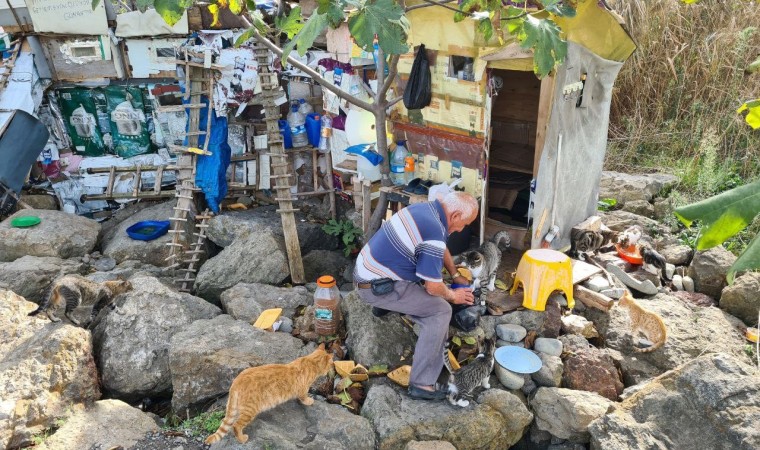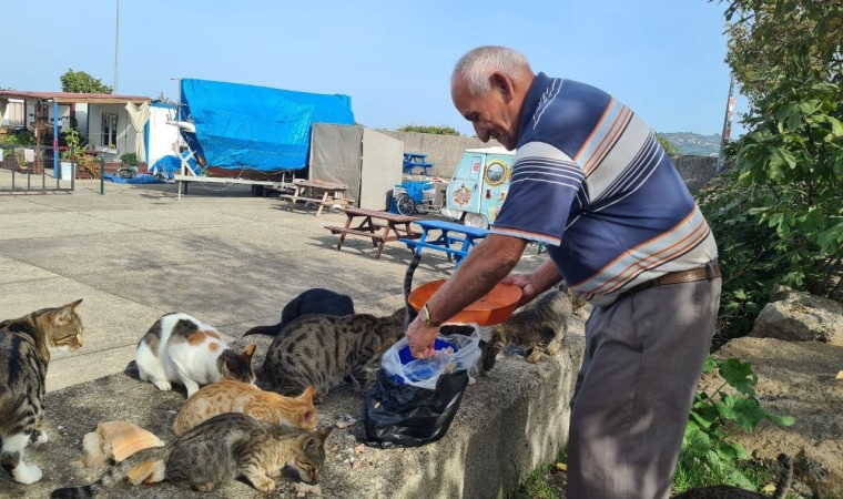 Zonguldak’ın Alaplı ilçesinde yaşayan 72 yaşındaki Hasan Kırmacıoğlu, her gün yürüyerek beş kilometre uzaktaki balıkçı barınağına giderek 100 kediyi kendi imkanları ile besliyor.
