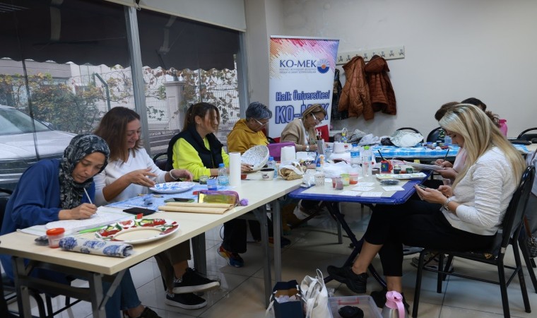 Genç yeteneklerin sanatla buluşmasına öncülük eden Kocaeli Büyükşehir Belediyesi Meslek ve Sanat Eğitimi Kursları (KO-MEK), hayallerini gerçekleştirmek isteyen ya da belli bir alanda ustalaşmayı hedefleyen yetişkin bireylerin de eğitim aldığı kurum olmaya devam ediyor. 44 kurs merkezinde 167 farklı branşta eğitimlerine devam eden KO-MEK’te ilgi duyulan bir başka branşta çini işlemeciliği kursu. Oldukça zor ve zaman isteyen branş olan çini işlemeciliği kursunda, objeler el emeği göz nuru ile boyanıyor ve ardından desen verilerek gün yüzüne çıkarılıyor.