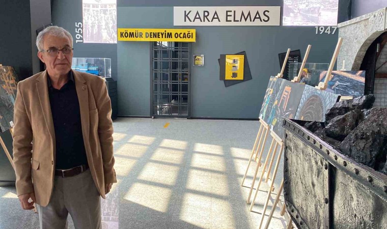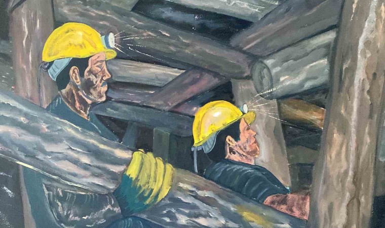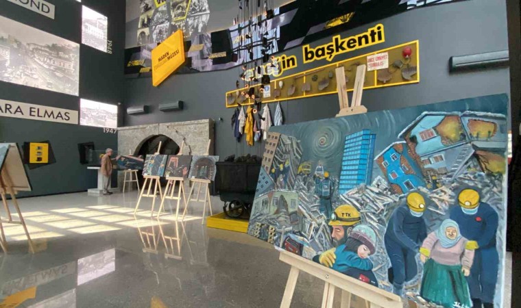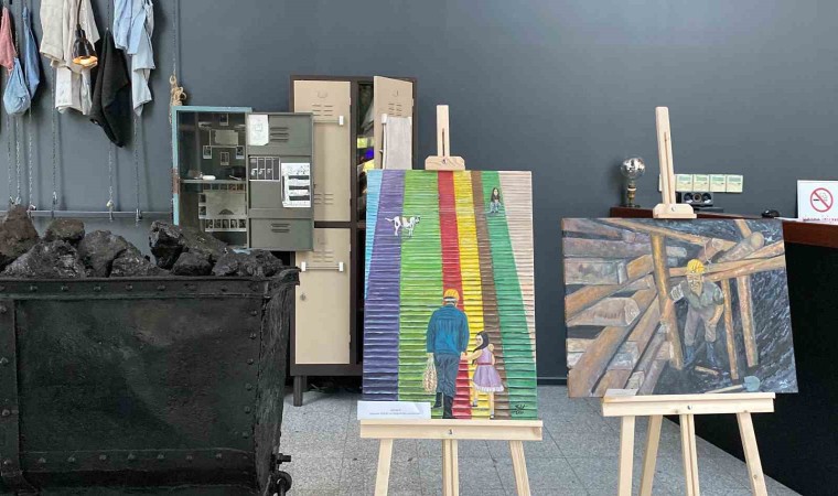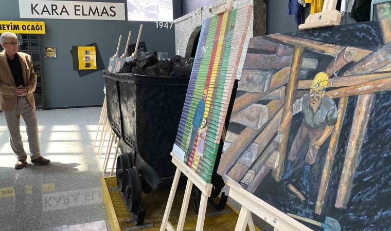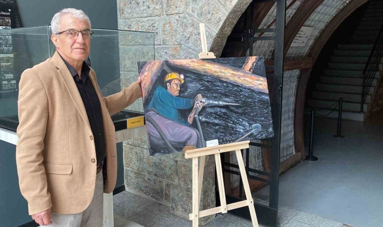 Zonguldak’ta emekli maden işçisi Halit Kaya, Maden Müzesi’nde madencileri ve maden ocaklarını konu alan eserlerini sergiledi.