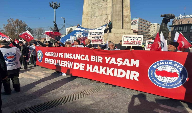 Emekli Memur-Sen tarafından Ankara Ulus Heykeli önünde basın açıklaması düzenlendi. Emekli Memur-Sen Başkanı Ali Küçükkösen emekli aylıklarıyla ilgili yaptığı açıklamada, “Emekli olunca rahat bir hayat yaşarız ümidiyle çalıştık çabaladık, devletimize prim ödedik, milletimize hizmet ettik, ülkemizin gelişmesine ve büyümesine katkı sağladık. Bugün geldiğimiz noktada içinde bulunduğumuz sistem emeklileri devlete yük ve maliyet olarak gösteriyor” ifadelerini kullandı.