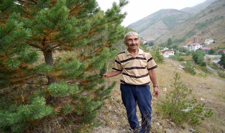 Gümüşhane’de yaşayan ve kendisini fidan dikmeye adayan emekli öğretmen Selahattin Bulut köyüne 4 bin fidan dikerek çıplak dağları yemyeşil hale getirdi.