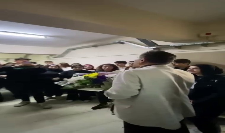 Kaplan, son dersinin ardından iki sıra halinde bekleyen öğrencilerinin arasından alkışlar eşliğinde meslek hayatını noktaladı.