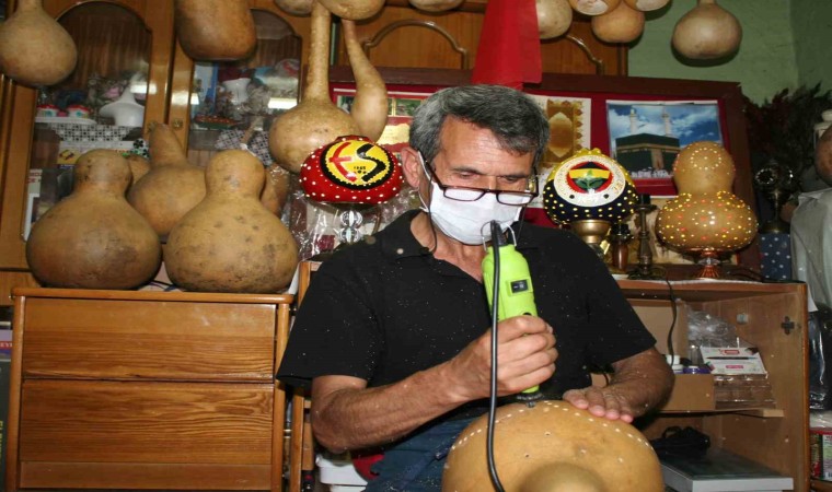 Bilecik’in Bozüyük ilçesinde yaşayan 55 yaşındaki Osman Yongacı isimli vatandaş, evinin bahçesinde yetiştirdiği su kabaklarını süsleyerek sanat eserlerine dönüştürüyor.