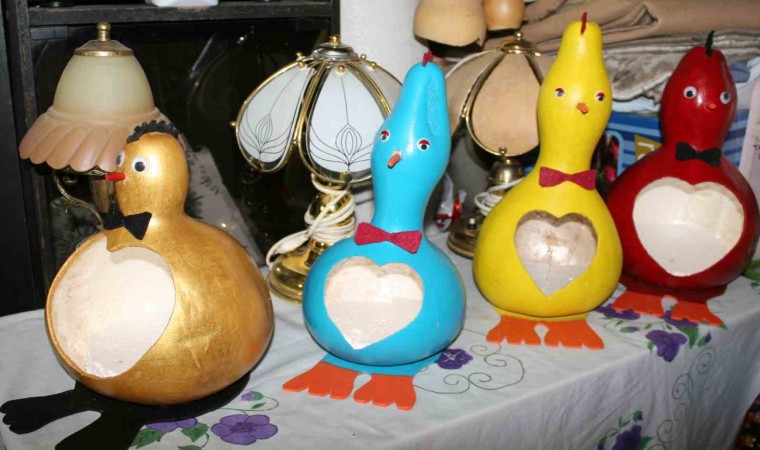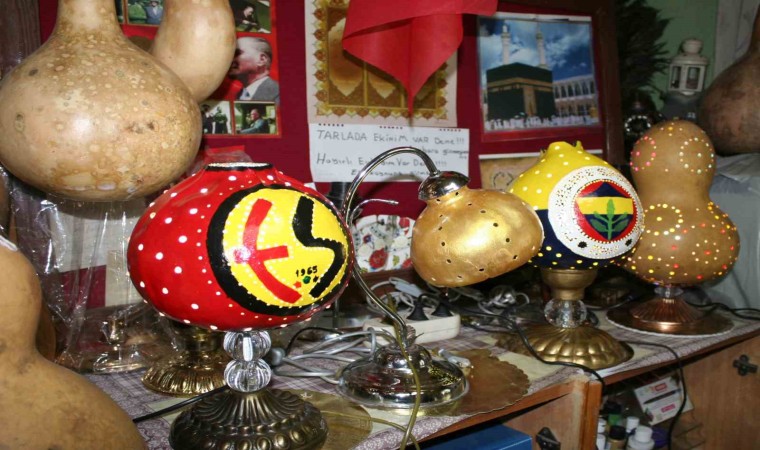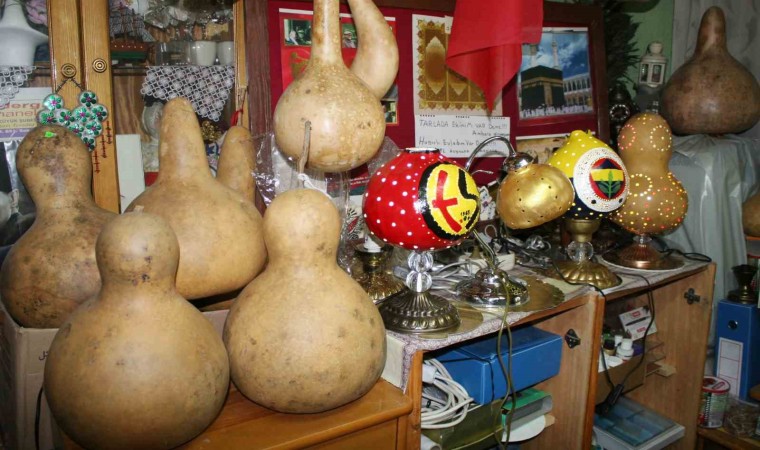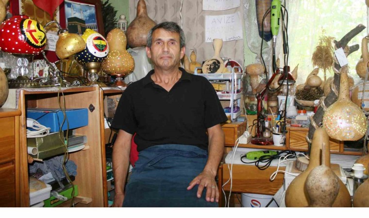 Emekli olduktan sonra boş vakitlerini değerlendirmek için su kabağı işleyen Osman Yongacı, kendi imkanlarıyla evinin bir odasına kurduğu küçük atölyede su kabaklarından birbirinden güzel eserler yapıyor. 7 yıldır su kabağı işlediğini anlatan Osman Yongacı; “Emekli olduktan sonra ne yapabilirim diye düşündüm. Arkadaşımın köyüne gittim. Orada su kabağı gördüm. Su kabağı çekirdekleri aldım ve kendim yetiştirmeye başladım. Yetiştirdiğim su kabaklarını, internetten gördüğüm süslenmiş su kabağı resimlerden esinlenerekten su kabağını işlemeye başladım. 2017 yılından itibaren su kabağı işlemeye devam ettim. İşlediğim su kabaklarını çevremden büyük beğeni aldım. Sipariş almaya başladım. Değişik farklı türlerden kabaklar yetiştirdikten sonra rağbet arttı. Hala bu işi yapmaktayım. Taraftar lambalar, avizeler, abajurlar ve masa lambaları en çok tercih ediliyor” dedi.