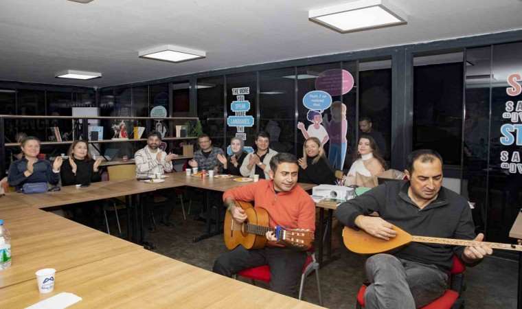 Sosyal Hizmetler Dairesi Başkanlığı bünyesinde faaliyetlerini sürdüren ’Hello Mersin’ yabancı dil kulübü kursiyerleri,’Hello Mersin’ yabancı dil kulübü kursiyerleri de yeni yılın gelişini kutladı. İngilizce ve Almanca’da kendilerini geliştirmek isteyen Mersinlilerin severek katıldığı kulüpte kursiyerler, hem yeni yılın gelişini kutlamak, hem de kaynaşmak için etkinlik düzenledi. Yanlarında getirdikleri müzik aletleri eşliğinde şarkılar seslendiren kursiyerler, yeni yıldan dilek ve beklentilerini paylaştı, çekilişle hediyeleşerek moral buldu.