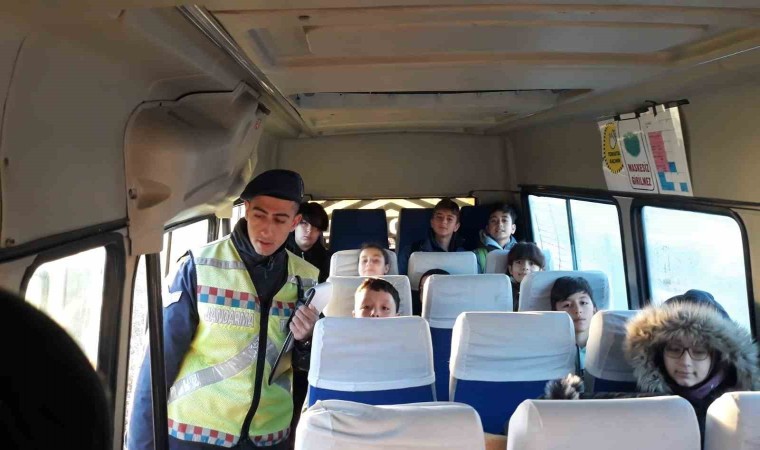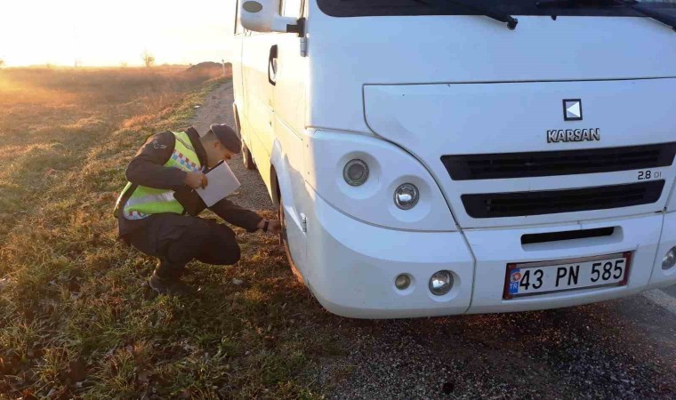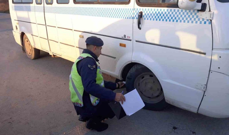 Kütahya’nın Hisarcık ilçesinde Emet Jandarma Trafik ekipleri, okul servis araçlarına yönelik kış lastiği denetimi yaptı.