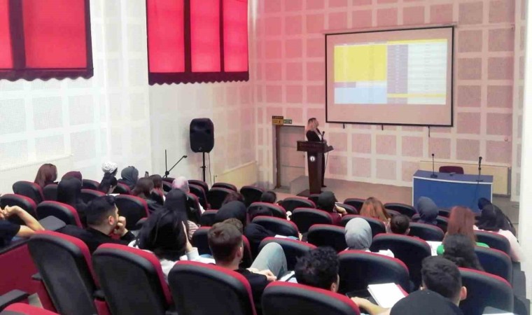 Öğr. Gör. Dr. Sevim Özkan, sunumunda "Enflasyon" ile "Kamuda Tasarruf ve Verimlilik Paketi" konuları başta olmak üzere Türkiye Ekonomisinin birçok konusunu ele aldı.