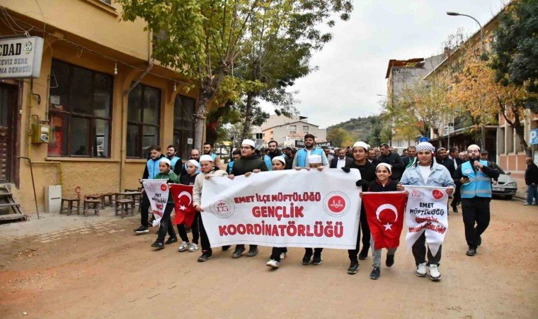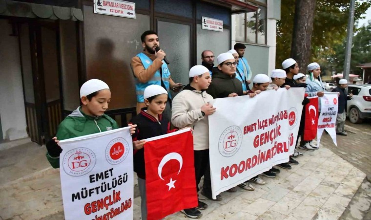 Filistin halkının mazlum ve masum olduğunu vurgulayan Emet İlçe Müftülüğü Gençlik Koordinatörü Süleyman Aydın, "Filistin, ümmetin kanayan yarası, vazgeçilmez hayalidir. Bizler, bu değer biçilemez toprakları, peygamberlerin beşiği olarak kabul edilen yurdu, bu necip Türk milletinin evlatları olarak sahipleniyoruz. Masum bebeklerin, acılı annelerin, vatan uğruna şehit düşmüş gençlerin yaşadığı, her evden şehit çıkan bu toprakların gerçek sahipleri olan Filistinli kardeşlerimizin yanındayız. Mazlumun yanında yer alarak, kardeşlik yürüyüşümüze katılan herkese teşekkür ederiz" dedi.