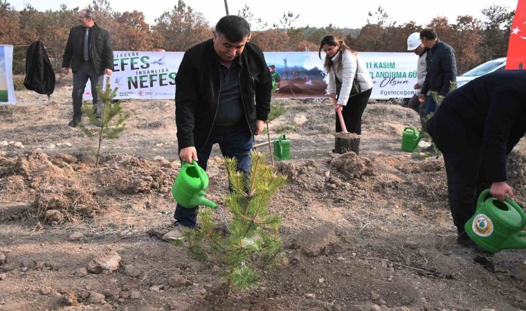 Kütahya’nın Emet ilçesinde Milli Ağaçlandırma Günü nedeniyle düzenlenen etkinlikte 300 fidan toprakla buluştu.
