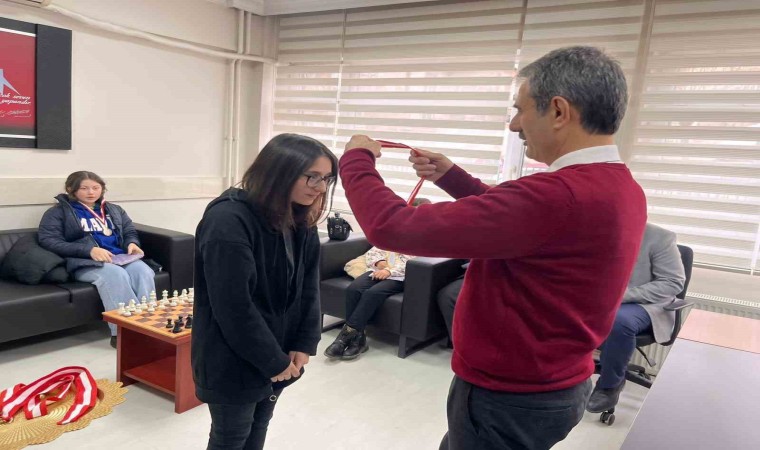 Okul Müdürü Ömer Uysal, en iyi afiş yarışmasında ilçe birincisi ve İl üçüncüsü olan Eda Nur Güzel‘i tebrik ederek başarılarının devamını diledi.