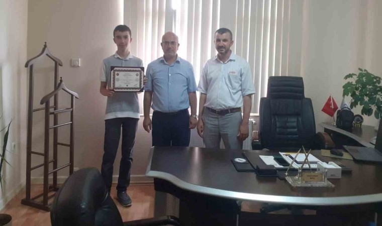 Hafızlık eğitimini tamamlayıp Hafızlık Tespit Sınavında başarılı olarak hafızlık belgesi almaya hak kazanan Furkan Kırlı’ya İlçe Müftüsü İsmail Çınar hafızlık belgesini takdim etti.
