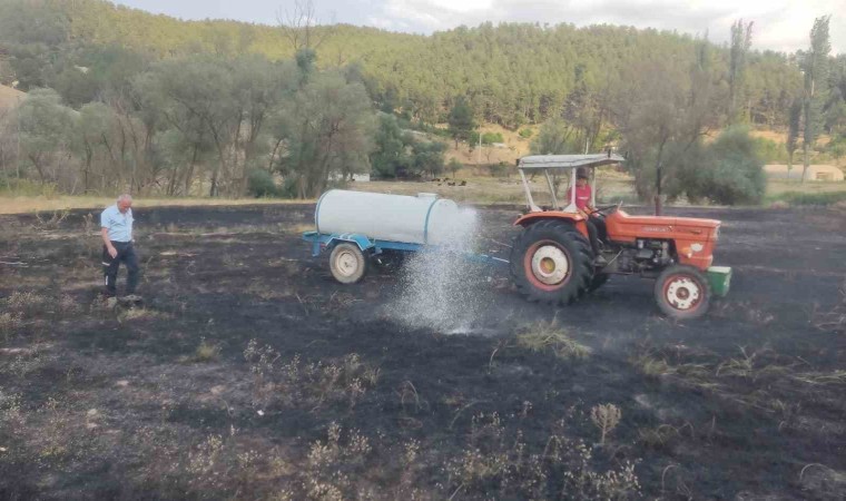 Kütahya’nın Emet ilçesinde mangal için yakılan ateşten çıktığı belirlenen yangından 2 dönüm ekili alan zarar gördü.