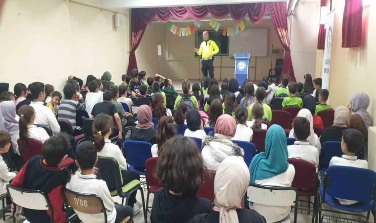 Yunus Emre İmam Hatip Ortaokulunda 110 öğrencinin katıldığı eğitim çalışmasında, emniyet kemeri ve kask kullanılması, karşıdan karşıya geçme, araçlara inme binme kuralları ve bisiklet kullanma gibi kurallar anlatıldı.