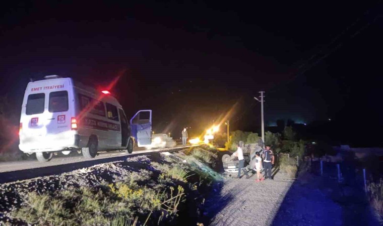 Yaklaşık 2 metrelik şarampole yuvarlanarak ters dönen araçta şoför M.T. ve araçta bulunan eşi H.T. (75) yaralandı. Yaralılar ambulansla Emet Dr. Fazıl Doğan Devlet Hastanesine sevk edilerek tedavi altına alındı.