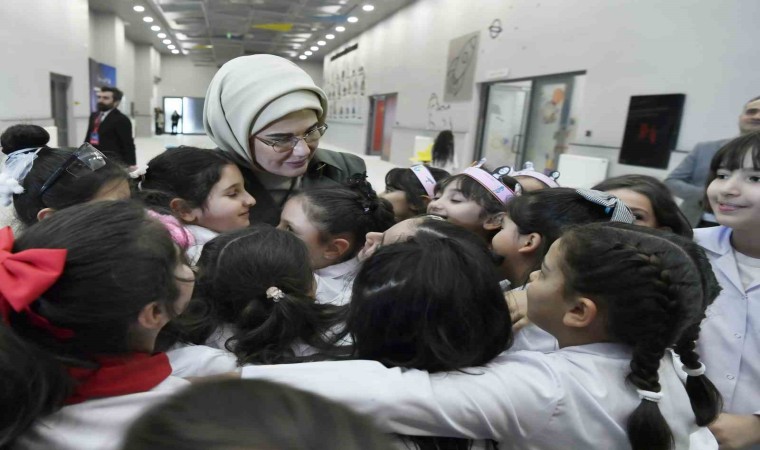 Atölyelerde proje çalışmaları yürüten öğrencilerle tek tek sohbet eden ve yaptıkları çalışmaları inceleyen Emine Erdoğan, öğrencilerle fotoğraf çektirdi. Öğrenciler de Emine Erdoğan’a sarılarak, sevgilerini gösterdi.