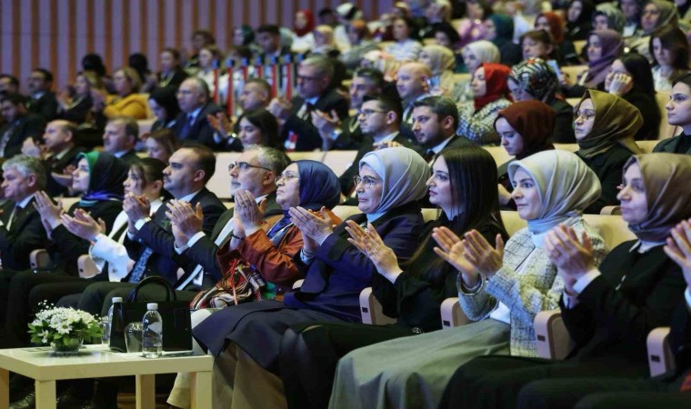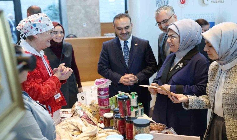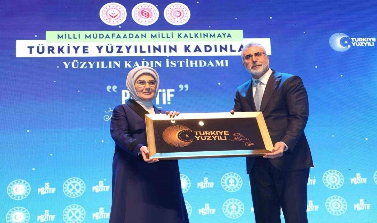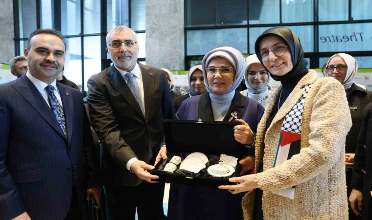 Emine Erdoğan, güçlü bir Türkiye’nin “güçlü kadın, güçlü aile ve güçlü toplum” temelleri üzerinde yükseldiğini söyleyerek, “Kadınların hak ettiği ölçüde kendisine yer bulamadığı, bireylerin aileden uzaklaşarak yalnızlaştığı bir toplum her türlü saldırıya açık hale gelir. Kalkınmaya yönelik amaçlar bugün yalnızca ekonomi değil, sosyal ve toplumsal boyutlarla ölçülenir. Nüfusun nerede yarısını oluşturan kadınların güçlendirilmesi, üretim dünyasına adil ve hakkaniyetli bir sistem ile dahil edilmesi, sürdürülebilirlik kalkınmayı hedefleyen her ülke için bir mecburiyettir. Türkiye olarak son yirmi yılda eğitimden istihdama, kadınların hak ve fırsatlardan eşit yararlanmaları için kapsamlı destek mekanizmaları oluşturduk. Kadınların toplumsal her alanda önlerine çıkan engelleri kaldırmak için var gücümüzle çalıştık. Çünkü inanıyoruz ki biz, kadını ve erkeğiyle güçlü bir milletiz. Türkiye yüzyılında koyduğumuz hedeflere de ancak birlikte omuz omuza yürürsek ulaşabiliriz. Bu dayanışma ve birliktelik hali üretim ve iş dünyasında da kendisini gösteriyor” dedi.