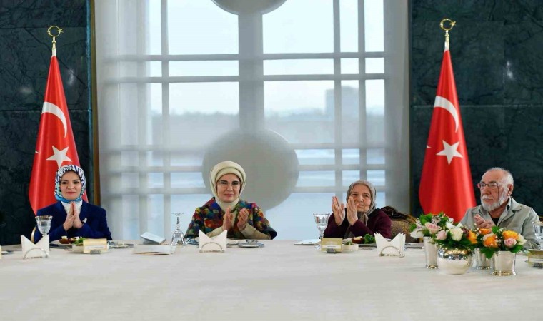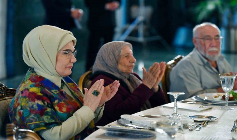 Emine Erdoğan, Yaşlılara Saygı Haftası dolayısıyla huzurevi sakinleriyle Cumhurbaşkanlığı Külliyesi’nde düzenlenen iftarda bir araya geldi. Buradaki konuşmasında milletin evi külliyede, huzurevi sakinlerini ağırlamaktan duyduğu memnuniyeti dile getiren Emine Erdoğan, ramazanın en güzel ve özlenen yanlarından birisinin de insanları sevdikleriyle buluşturan bereketli sofraları olduğunu kaydetti.