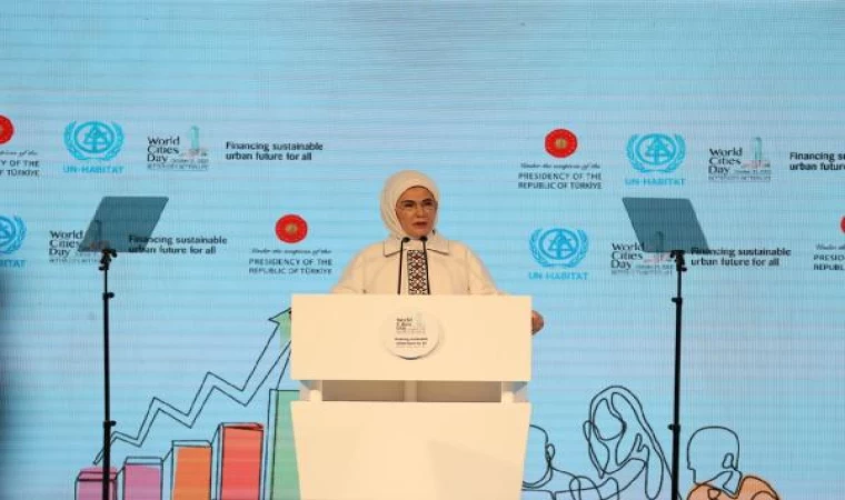 Şehirlerin insanın medeniyet yolculuğunda geliştirdiği düşünce birikiminin bir ürünü olduğunu söyleyen Emine Erdoğan, "Şehirleri inşa edip dönüştürürken, toplumsal kimlik ve kültürü de dönüştürdüğümüzü de unutmamak gerekir. Küresel her türlü değişimin anahtarı bir anlamda şehirleşmede gizlidir. Öte yandan kentleşmenin durdurulamaz bir hızda arttığı modern dünyada şehirlerin önemi farklı bir boyut kazanmıştır. Araştırmalar 2050 yılına kadar her 10 kişiden 7’sinin şehirlerde yaşayacağını ortaya koyuyor. Hızlı kentleşme birçok kriz ve sınamayı da beraberinde getiriyor. Ortaya çıkardığı en önemli sorunlardan bir tanesi şüphesiz dünyamızı kanayan bir küreye çeviren iklim değişikliği" ifadelerini kullandı.