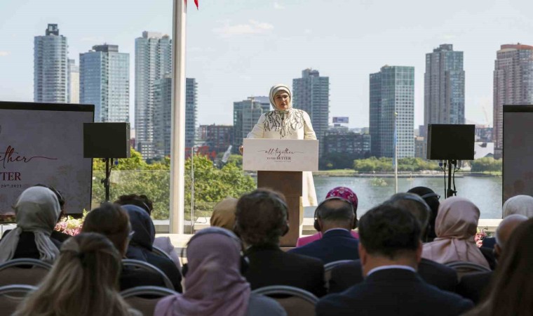 Emine Erdoğan, New York Türkevi’nde, devlet başkanı eşleri, uluslararası kuruluş temsilcileri ve seçkin bir davetli grubunun katıldığı programda sosyal refahın adil dağılımı hakkında bir konuşma yaptı.