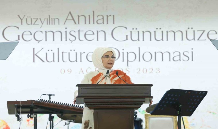 Çankaya Köşkü’nde açılan "Yüzyılın Anıları" sergisinin milletin tarihine sahip çıkma hikayesini gözler önüne serdiğini dile getiren Emine Erdoğan, "İnsanlığa rol model olacak medeniyet ve kültür kahramanlarıyla dolu geçmişimiz, en büyük zenginliğimizdir. Mevlana’nın deyimiyle kalpten gelen sözlerimiz tüm dünyada kulakları aşıp kalplere ulaşıyor. Aynı şekilde Hacı Bektaş Veli, Aşık Veysel, Pir Sultan Abdal, Yunus Emre’nin mayalayacağı gönüllerle dünya barışına bir adım daha yaklaşacağımıza inanıyorum. Bize düşen, bu muhteşem miras vasıtasıyla dünyanın giderek çoraklaşan iklimine can suyu verebilmektir" ifadelerini kullandı.
