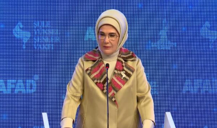 Emine Erdoğan, "Kurumlarımız ve milletimiz ile her türlü insani krizde gösterdiğimiz hassasiyetin bize katlanarak döndüğünü yakın zamanda da tecrübe ettik. Şubat ayında 11 ilimizi kapsayan büyük bir deprem felaketiyle sarsıldık. Yıkıcı büyüklükteki felaketin etkilediği alan, dünyanın pek çok ülkesinden daha büyüktü. Bununla beraber ülkemizde ve dünyada tecessüm eden büyük bir vefa ve gönüllülük çemberiyle kuşatıldık. Devletimizin bütün kurumlarıyla sahaya inmesi hükümetimizin bütün enerjisini ve kadrolarını seferber etmesi ve siz gönüllülerimizin fedakarlığı ile bu büyük afetin yaralarını her geçen gün biraz daha sarıyoruz. Bu süreçte yıllardır acılarına kayıtsız kalamadığımız bütün mazlumların duası ile milletimizin birlik ve beraberliği en büyük dayanağımız oldu" ifadelerini kullandı.
